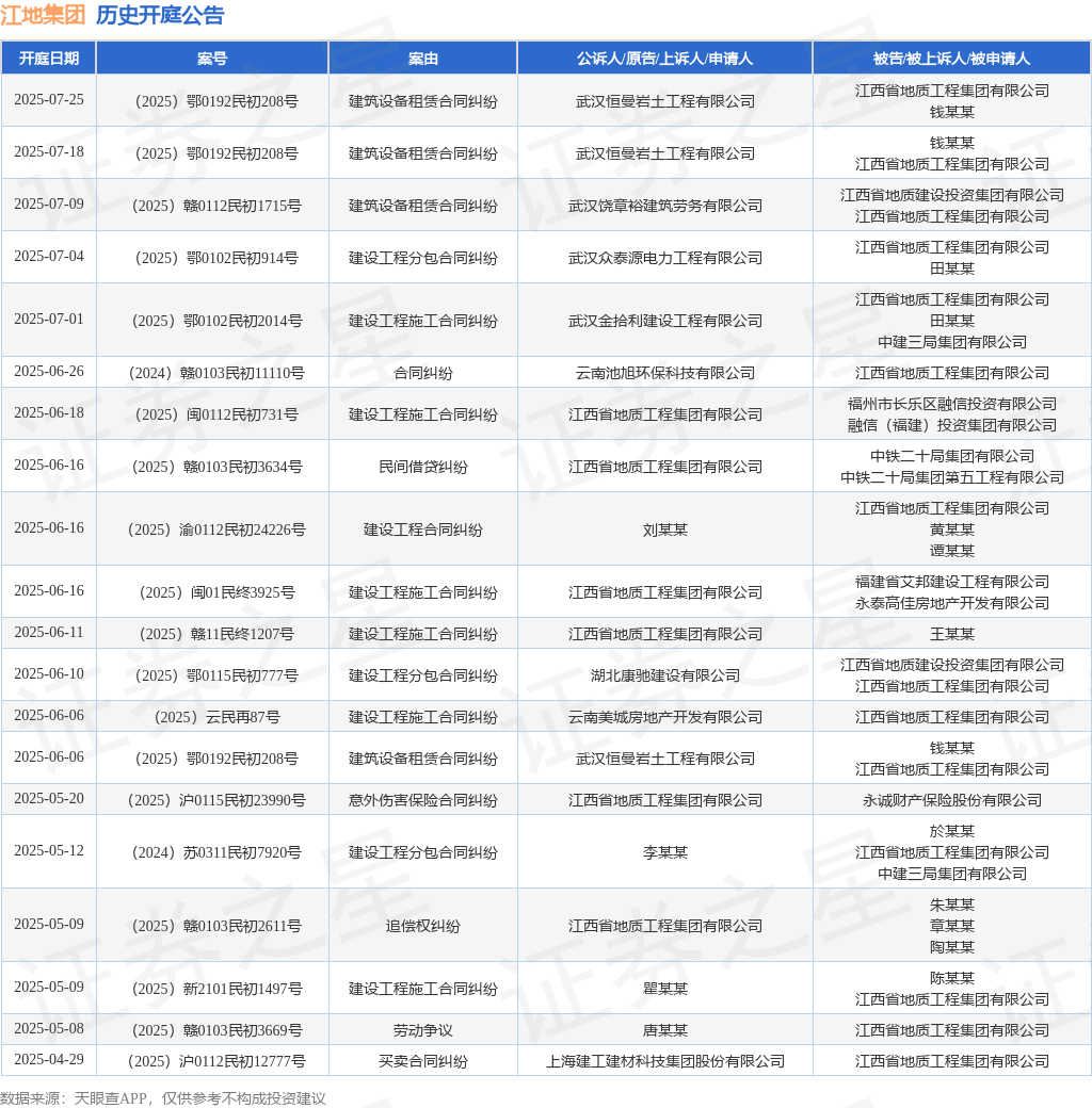 本站消息,根据天眼查APP显示,近日公布了一则江西省地质工程集团有限公司作为原告/上诉人的开庭公告,详细内容如下: